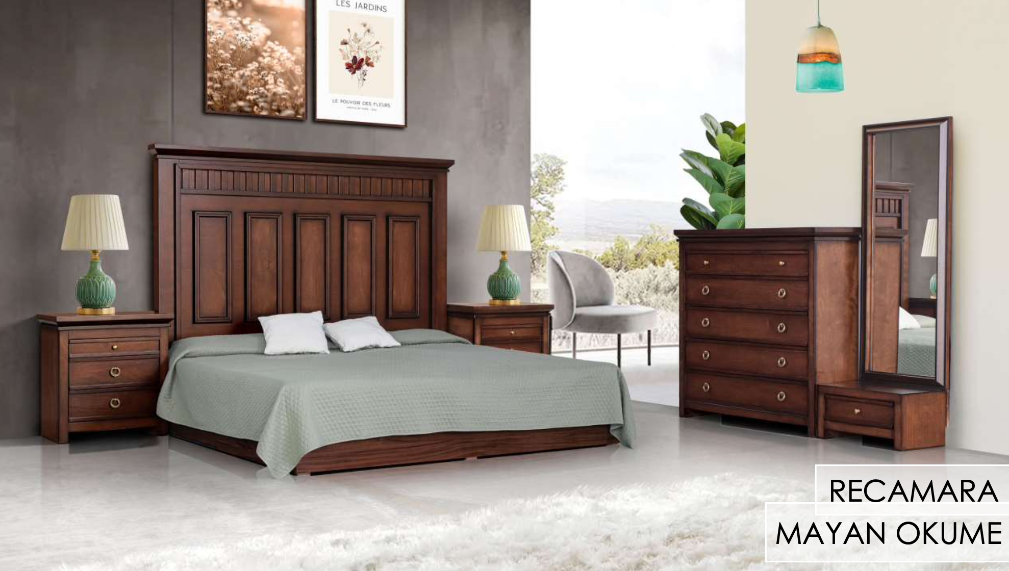 Aporta un toque de majestuosidad y calidez a tu dormitorio con la Recámara Mayan. Este conjunto, con un diseño de paneles verticales y robustas molduras, destaca por su presencia sólida y sus acabados ricos, creando un ambiente que evoca la elegancia duradera. Es la elección perfecta para quienes buscan un espacio de descanso con carácter y personalidad.